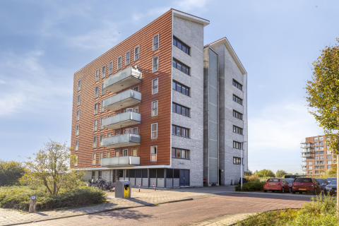 entree van de woning; hal met toegang tot alle vertrekken; een grote lichte woonkamer met open keuken voorzien van een koel/vries combinatie, oven en een gasfornuis met daarboven de afzuigschouw, riante slaapkamer welke middels een kleine aanpassing eenvoudig om te zetten is in 2 kamers. De badkamer is voorzien van een wastafel, toilet, douche en de wasmachineaansluiting. Vanuit zowel de woonkamer als de slaapkamer heb je toegang tot het, op het westen gelegen balkon.